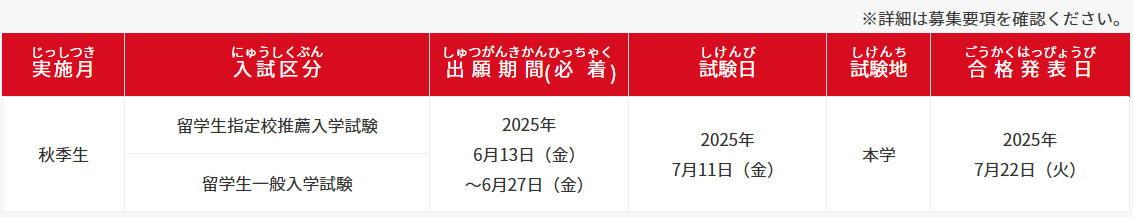 | 2026年度 秋季生 |