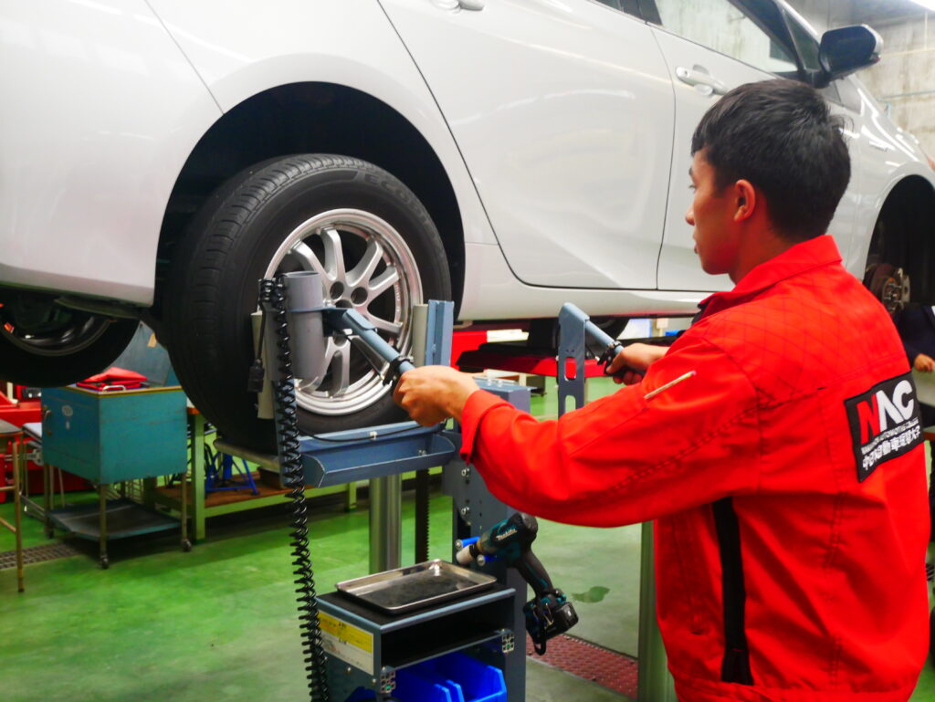 LEXUS LMを使ったアクティブテスト、燃料電池自動車のMIRAIについて、タイヤ脱着の補助器具などの使い方について勉強しました。
