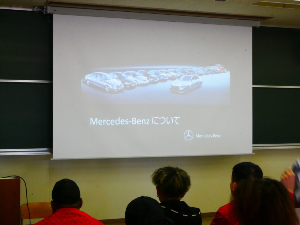 展示ブースではメルセデスベンツの様々なタイプのクルマをご用意いただき、丁寧に説明いただきました。普段なかなか見れない車に学生達も目が離せない様子でした。